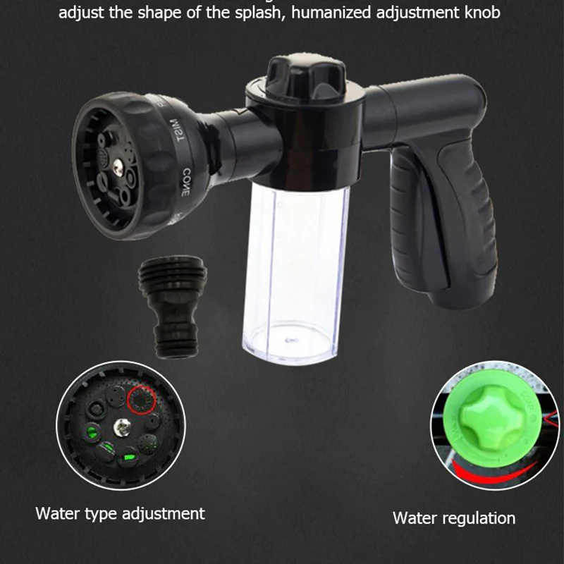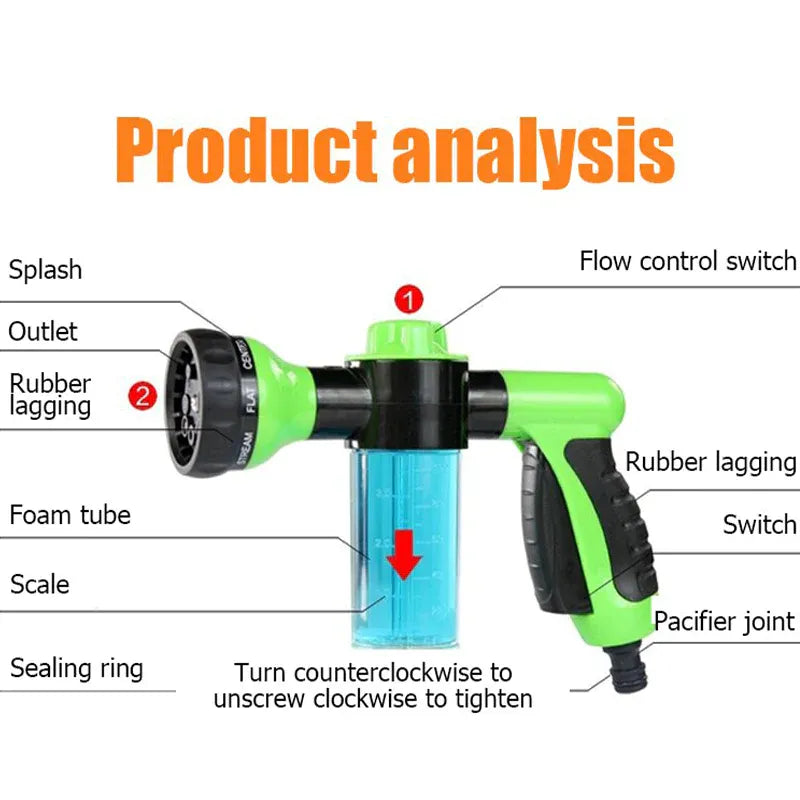 Ons Besgard™ Dual-Use Hogedruk Waterpistool heeft 8 sproeiers en een zeepdispenser, hoge druk ontwerptechnologie. Het concentreert de waterdruk op één punt. De sproeiafstand kan 6-10 meter bereiken, wat het beste is voor het besproeien van planten, gazons, patio's en autowasplaatsen, zelfs het wassen van huisdieren.