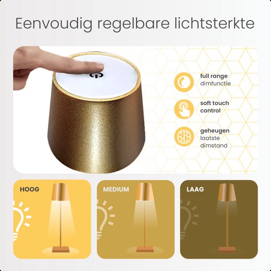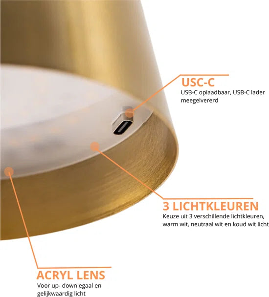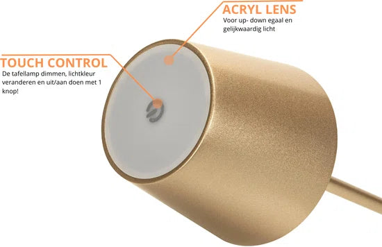 Tafellamp aluminium oplaadbaar dimbaar touch 36CM Goud