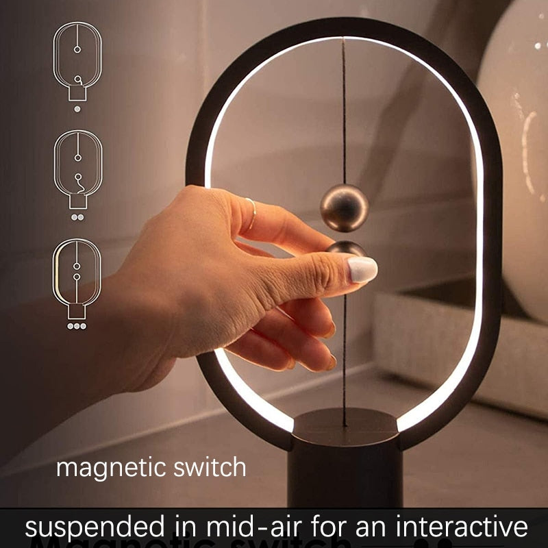 Wanneer je het onderste balletje optilt zal deze door het bovenste balletje aangetrokken worden waardoor het licht aan gaat. Daarnaast zullen de balletjes elkaar in balans houden wat een gaaf gezicht geeft. De schakelaar die lijkt te zweven.